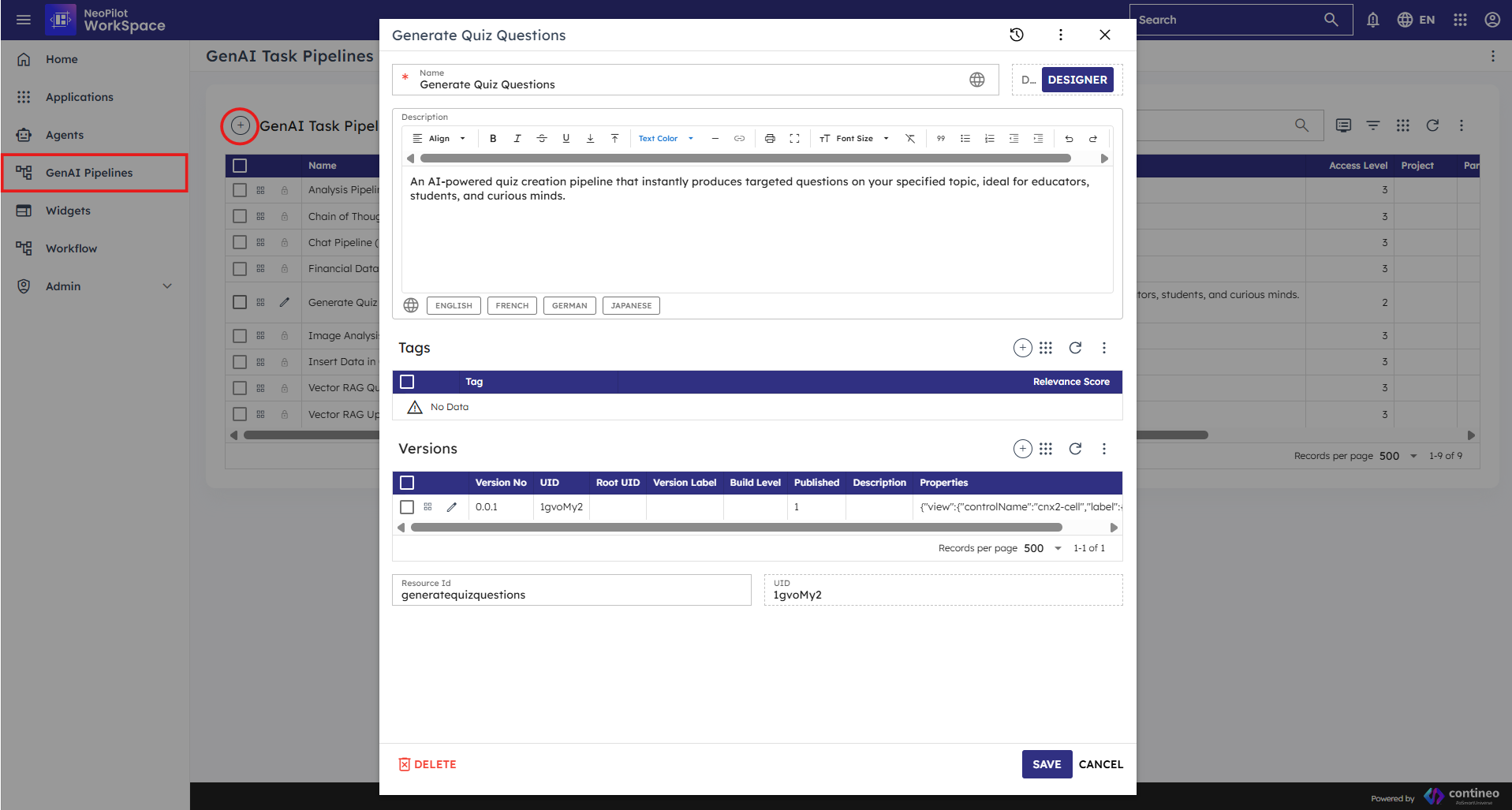 Figure 28: Publishing the Quiz Generator agentGo to the NeoPilot homepage. Find your agent under the MY AGENTS section.
