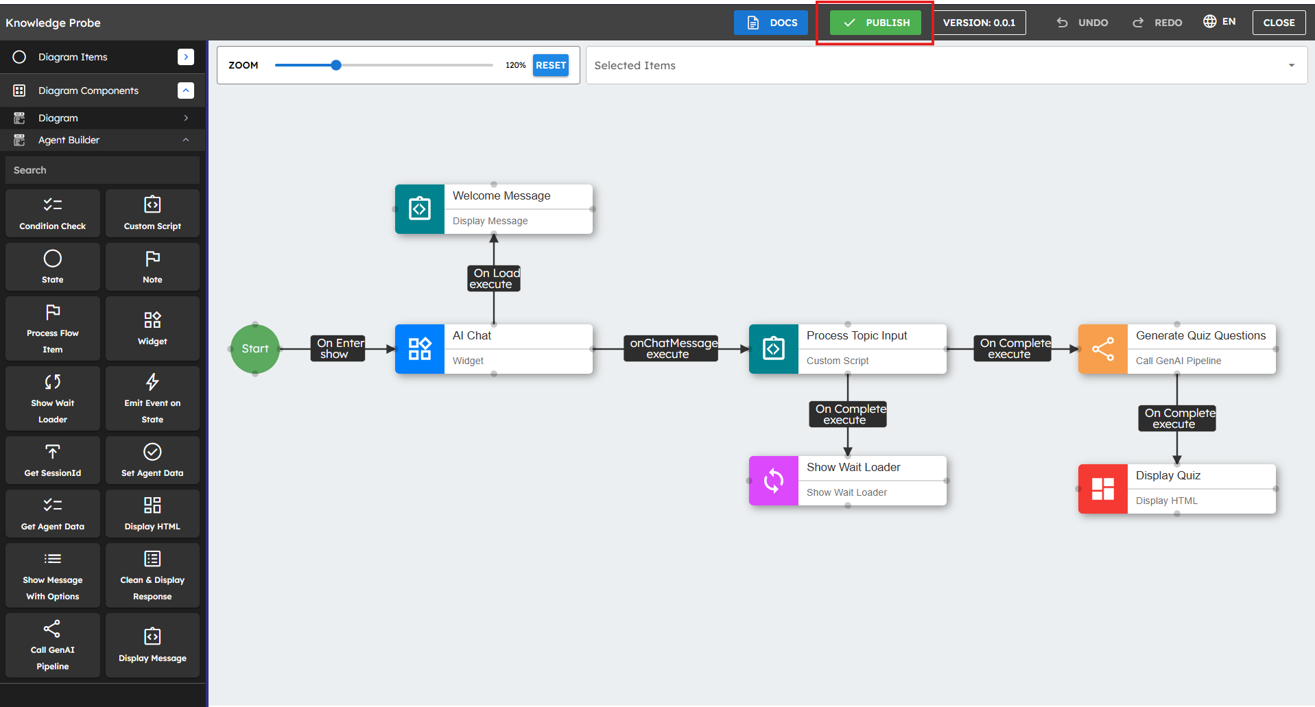 When you are satisfied with your agent, publish it to make it available for use: