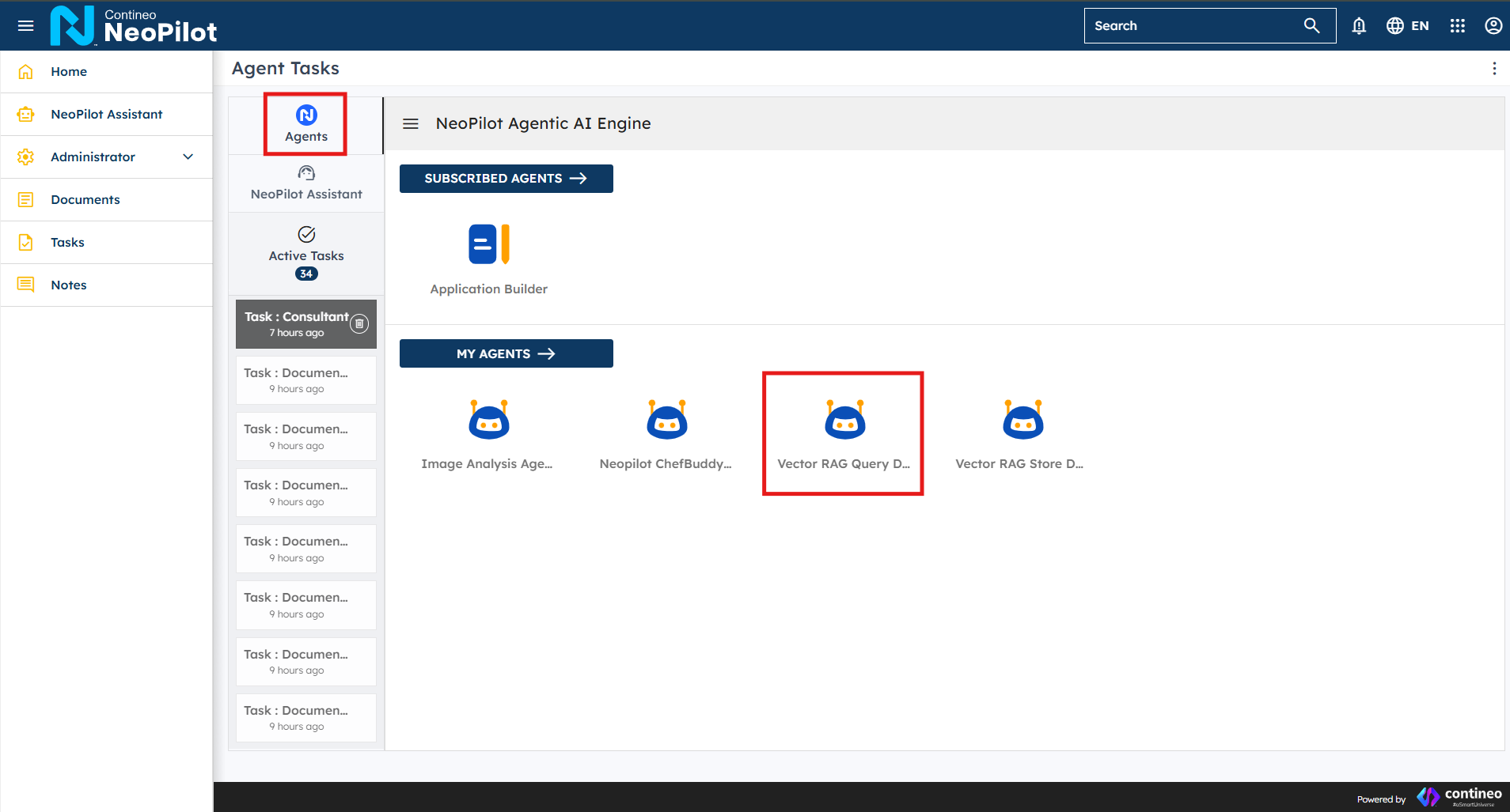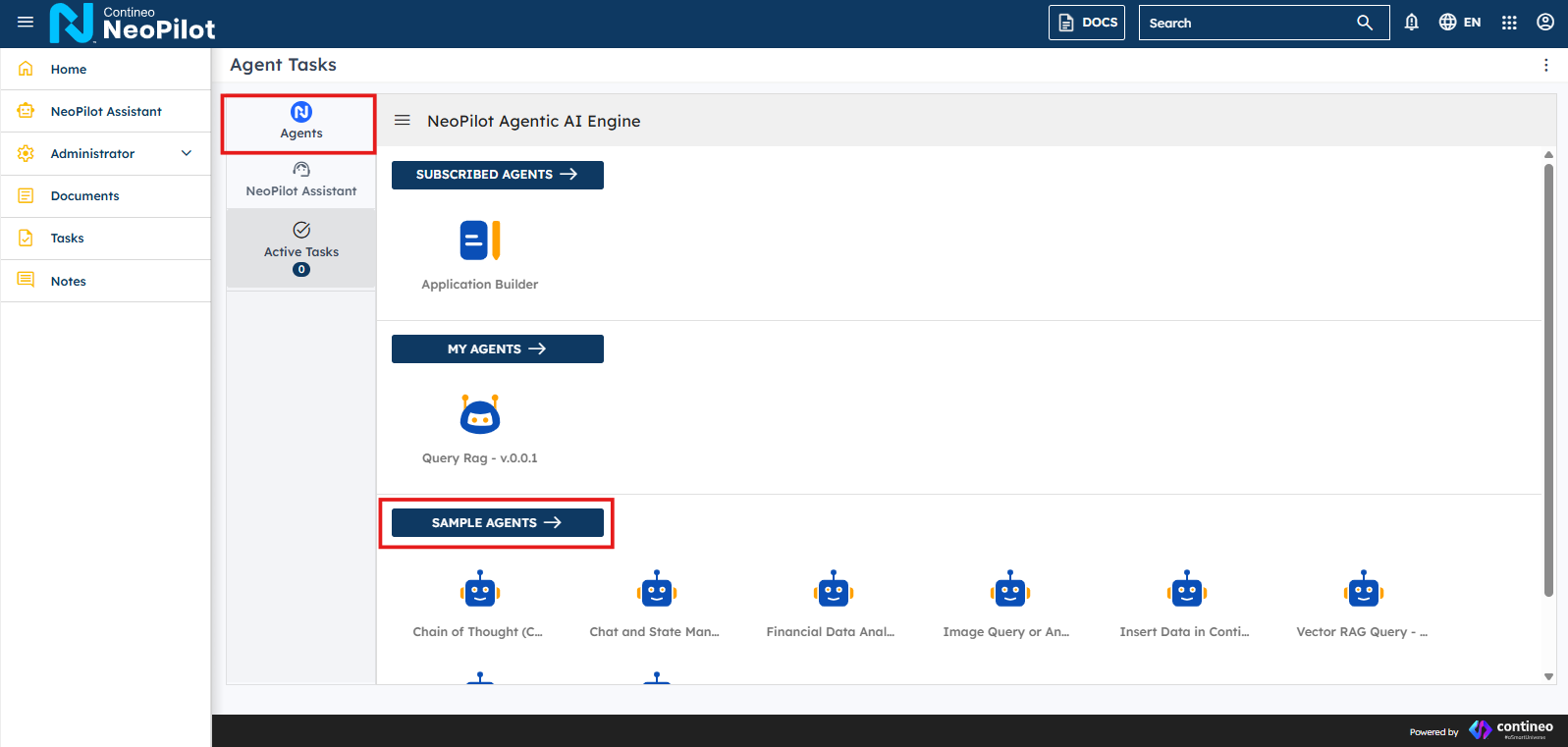 Figure 7: Navigate to NeoPilot Agentic AI EngineFrom the NeoPilot homepage, click Agents in the navigation.