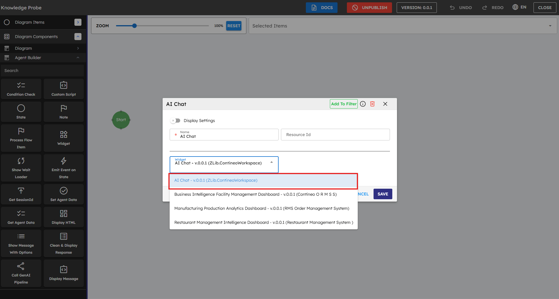 Figure 2: Accessing the Agent Builder through the application palette