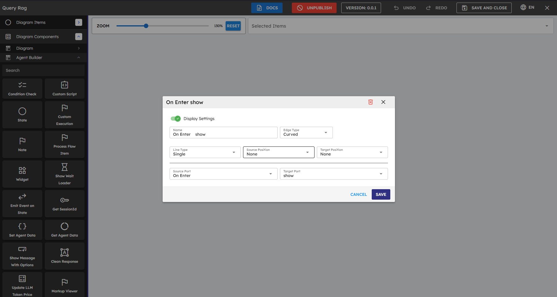 Agent Builder works as a canvas where you arrange building blocks to create a flowchart that defines how your AI assistant behaves and responds.