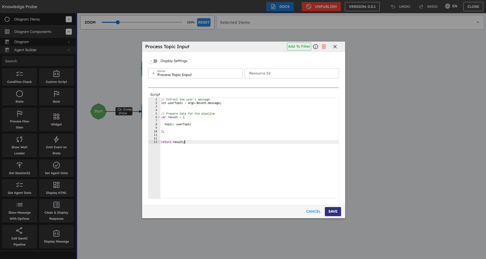 GenAI Pipeline Builder - Guide to creating AI pipelines that run your agents.