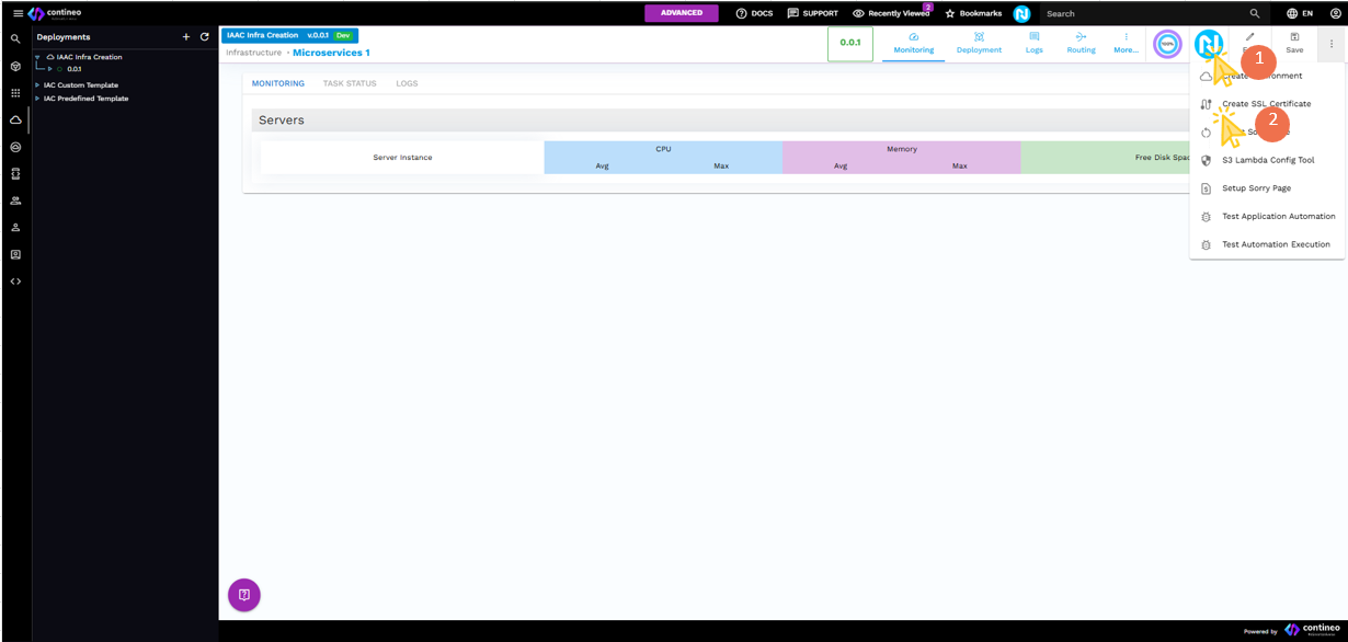 Note: The SSL certificate is created only if the base URL matches the Microservice / ECS / EC2 configuration.Select the appropriate Region from the dropdown menu.