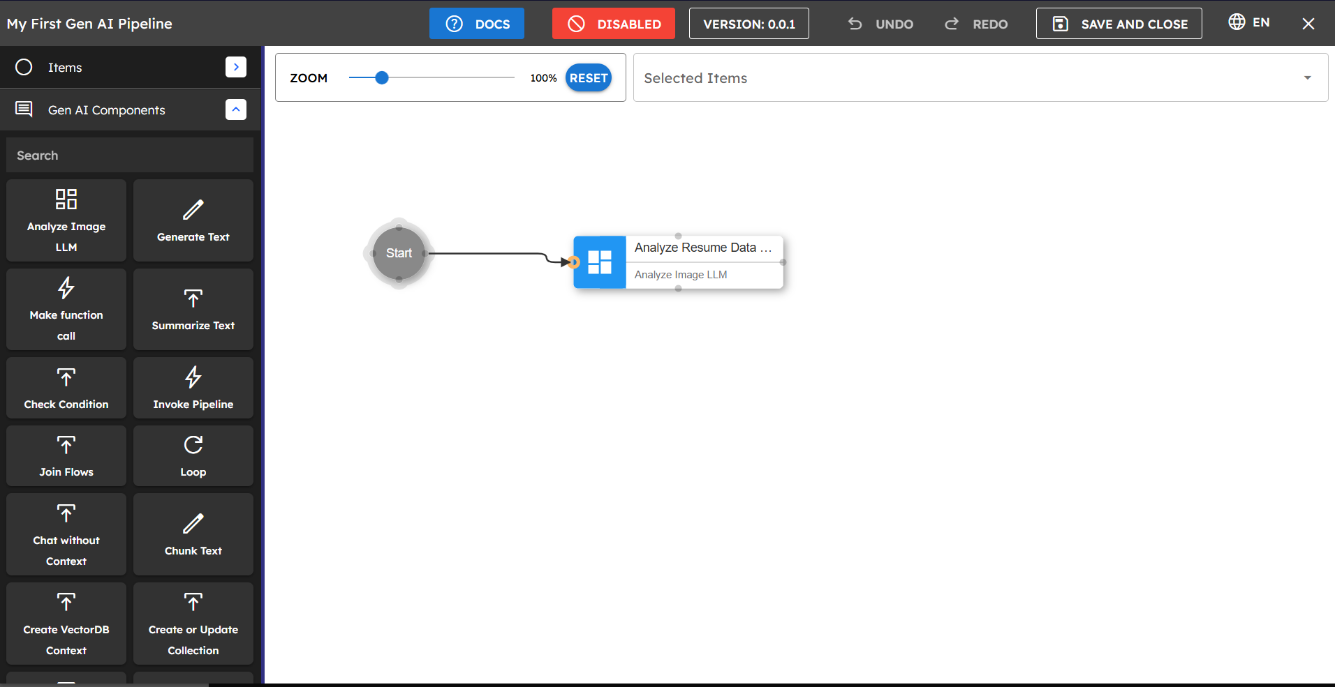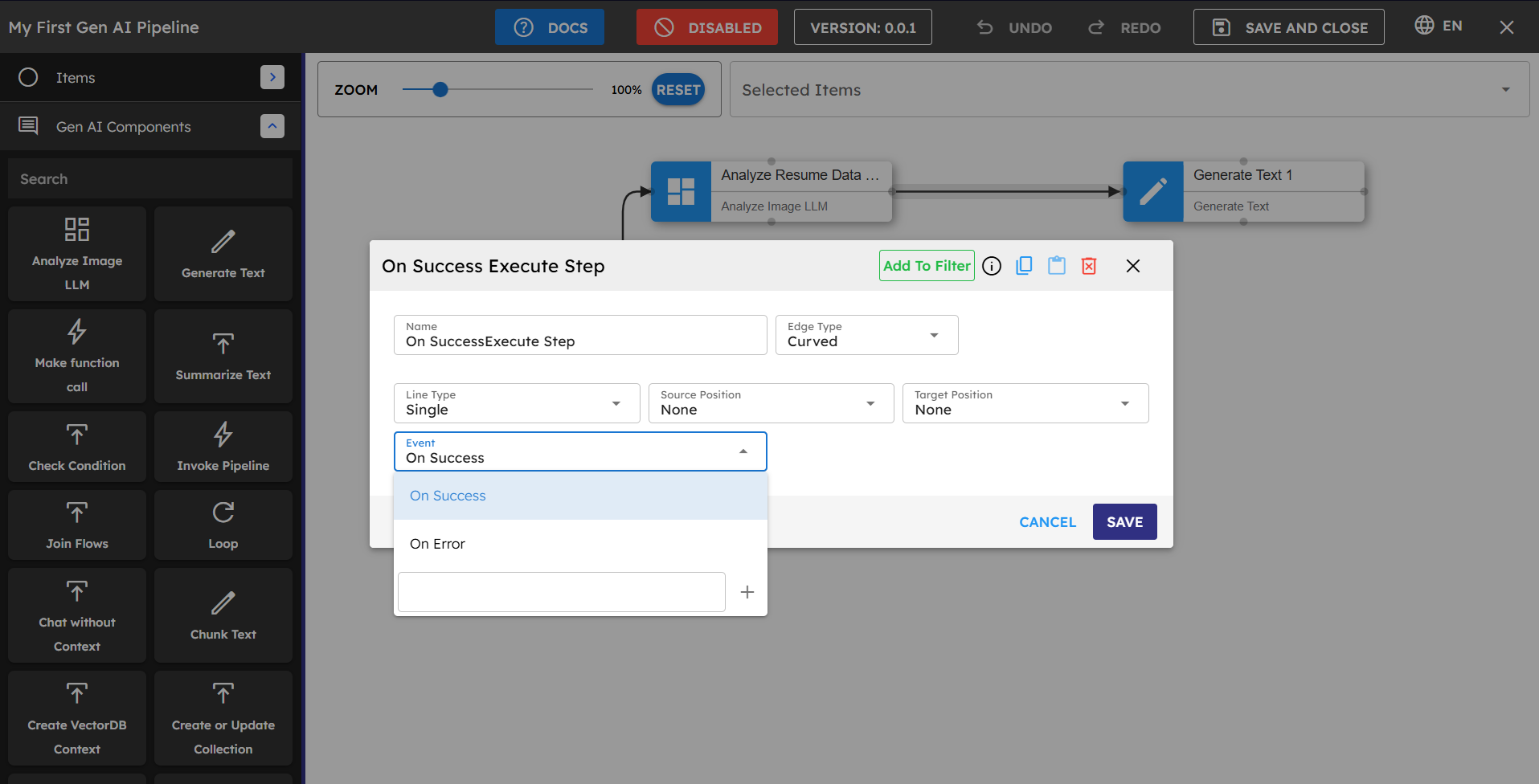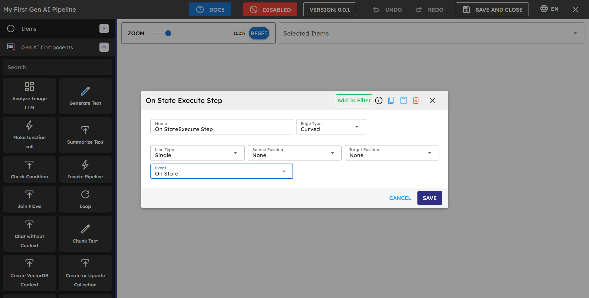 The Pipeline Builder helps you create intelligent workflows with AI capabilities. It enables you to build powerful generative AI applications by connecting various components that handle data retrieval, processing, and response generation. This documentation guides you through key concepts, best practices, and troubleshooting.