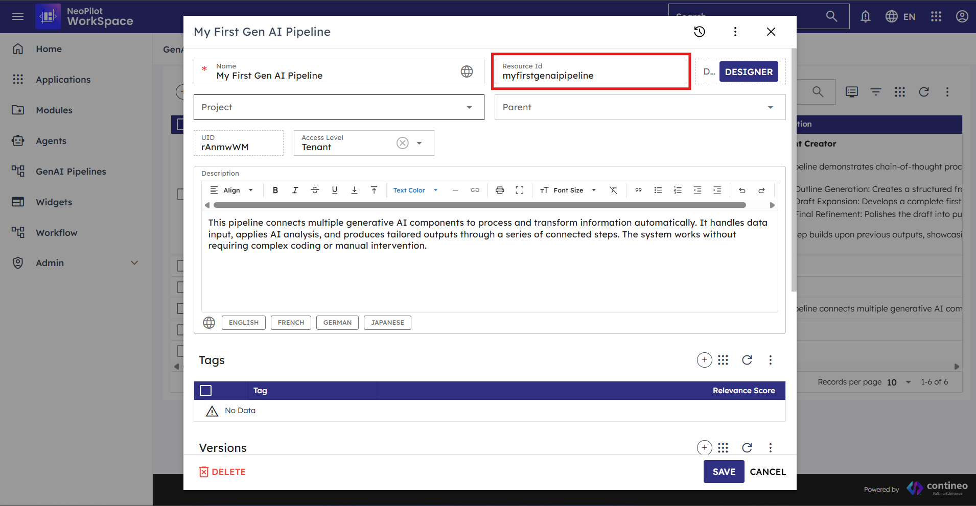 Figure 1.1: Pipeline Resource ID field in the pipeline configuration dialog