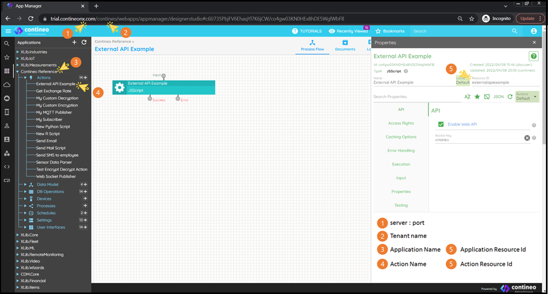 http(s)://<server:port>/<tenant name>-<application resource id>-API/<action resource id>?<parameters>