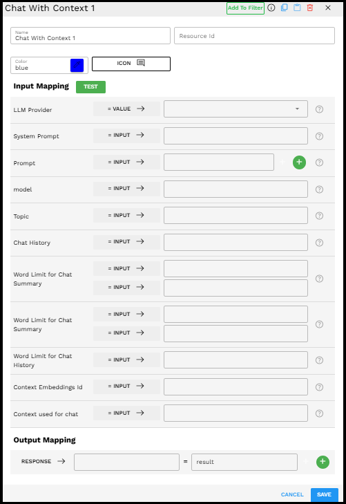 Chat With Context component in the Pipeline Builder interface
