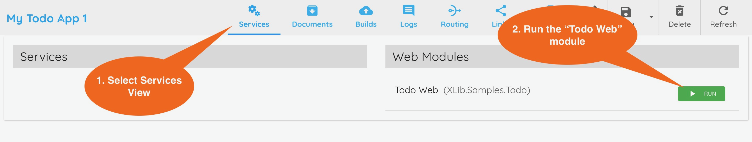 To get started, run a simple to-do application. The components for this application are already built. You may refer to these components for examples of how to build functionality in your applications.