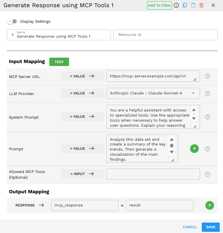 The Generate Response using MCP Tools component can be used for