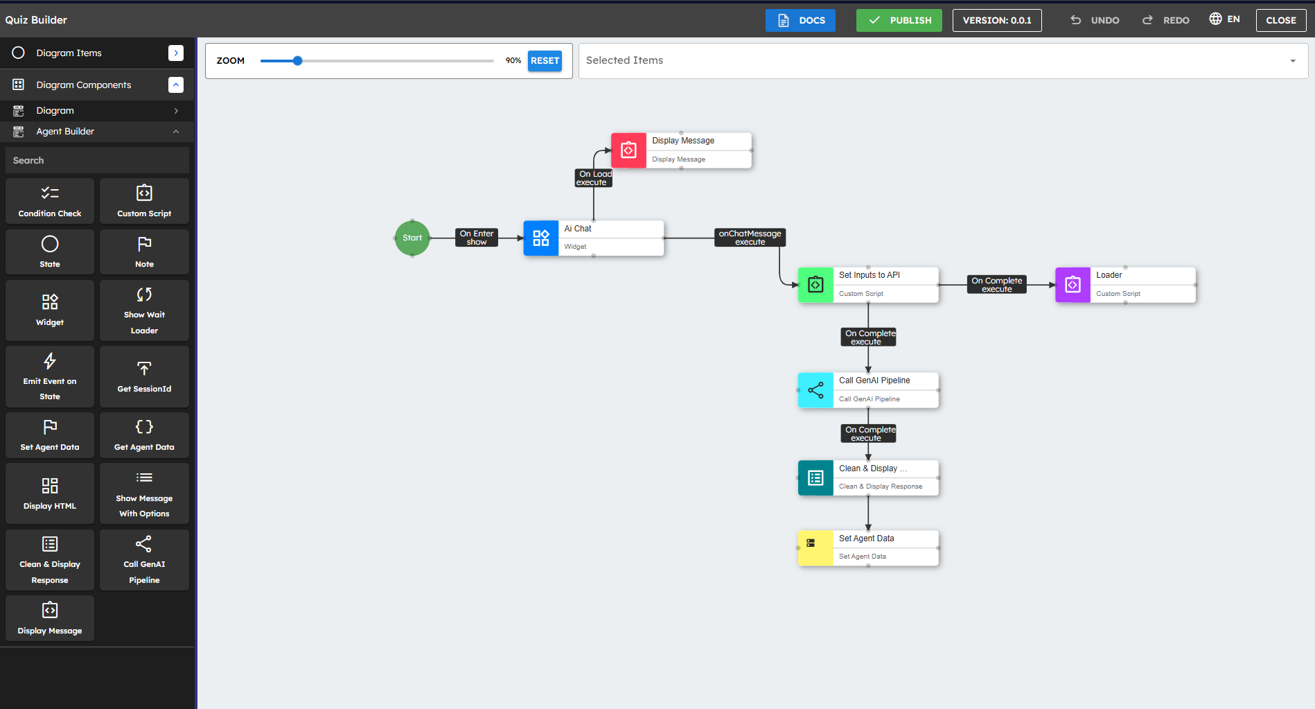 In this implementation example, the Quiz Builder agent has the following workflow: