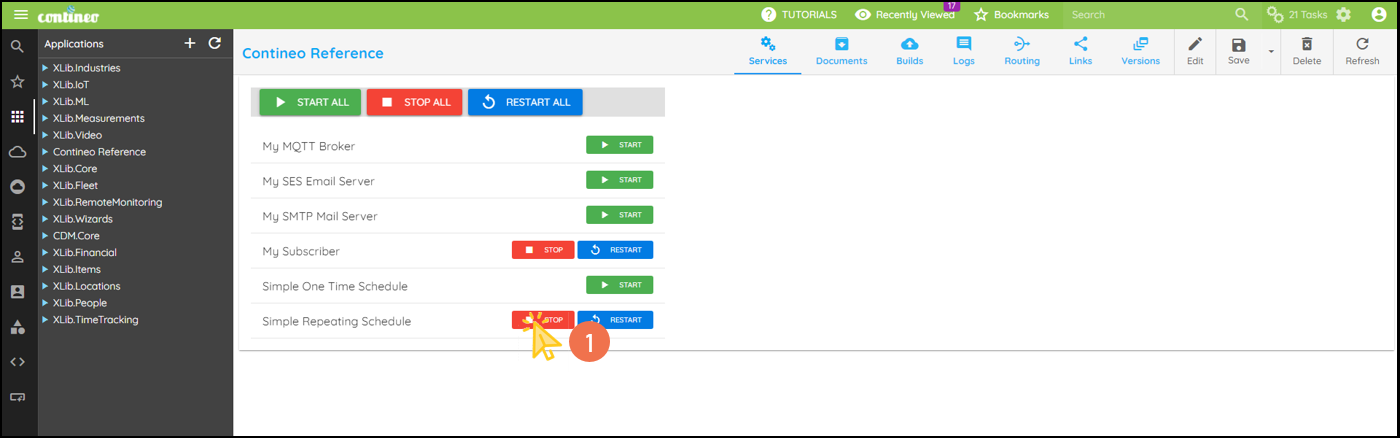 You can start and stop the services from Application > Services.