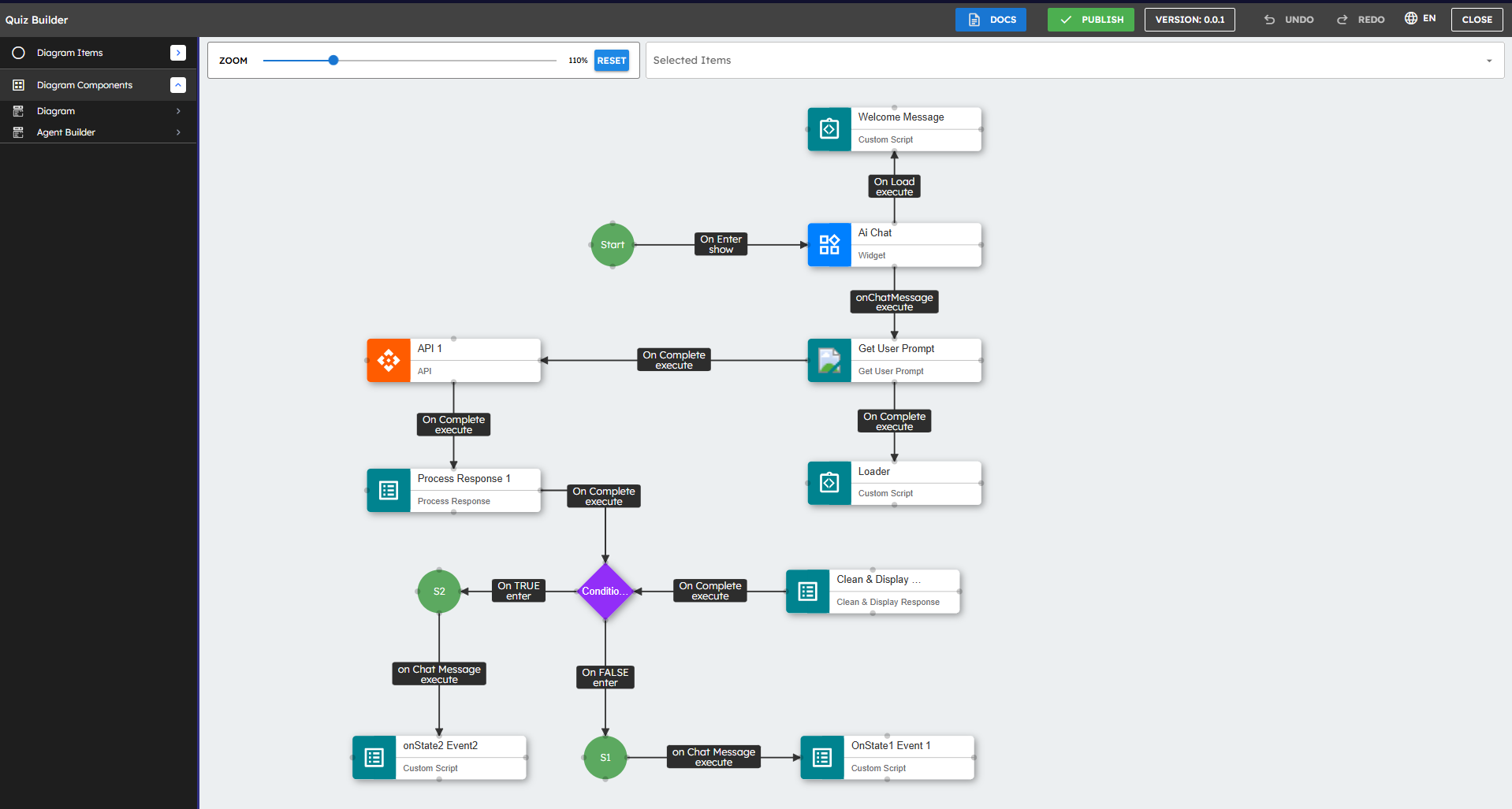 The above example shows a conditional workflow using State components: