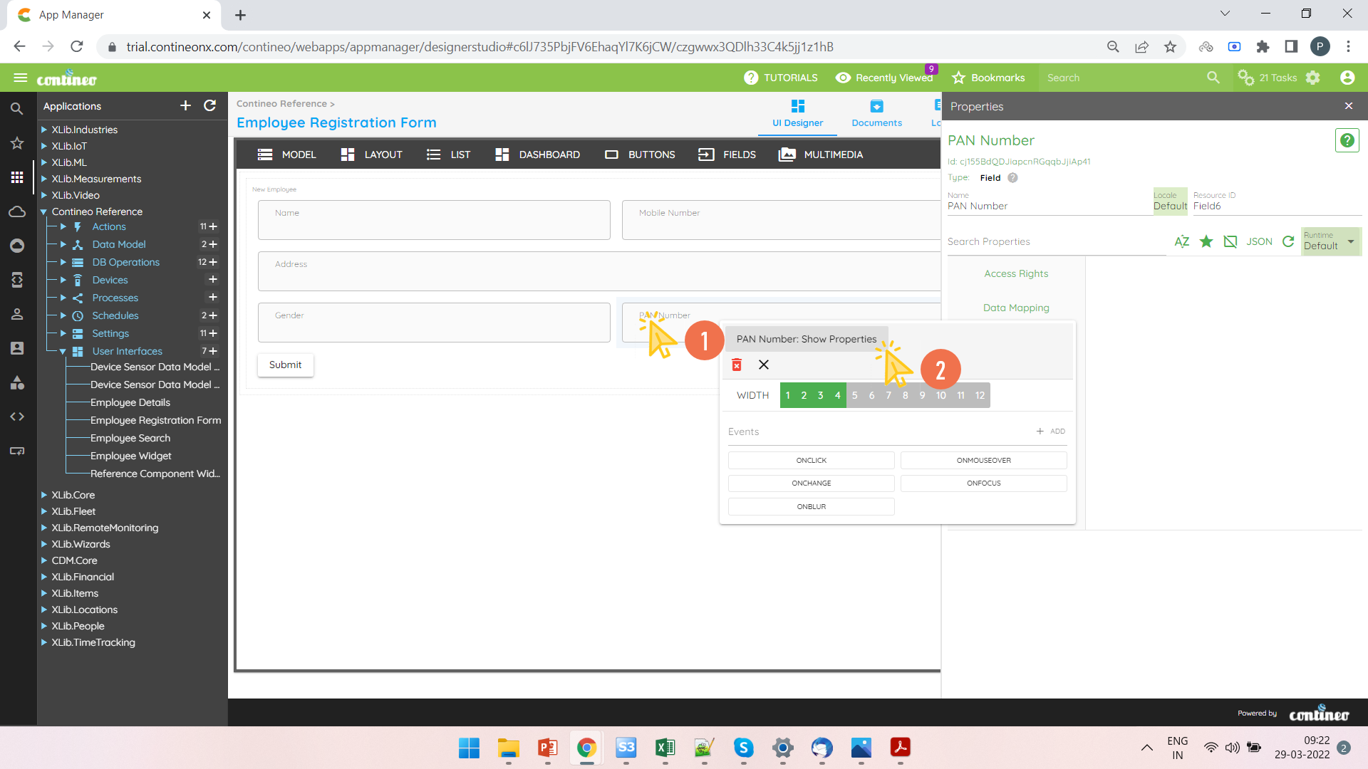 Right-click the Employee PAN Number field and open the Properties Panel.