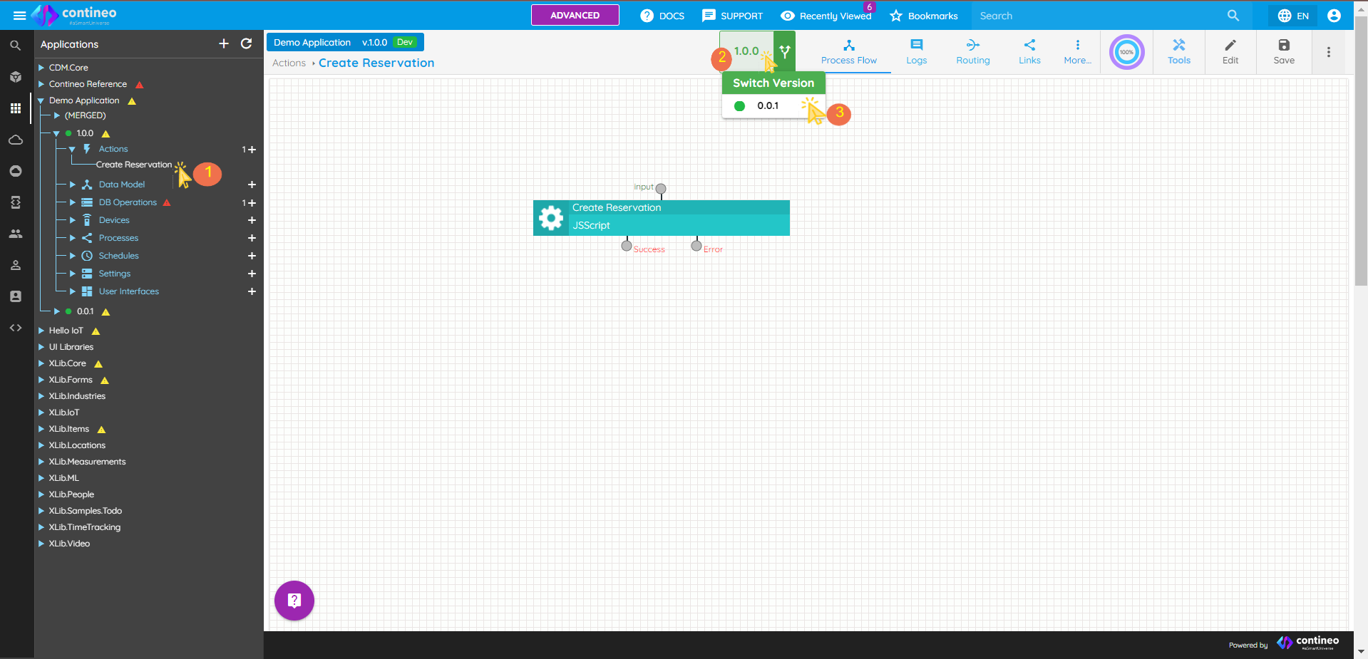 As shown in the following image, all the versions created for the application are visible under the application name.